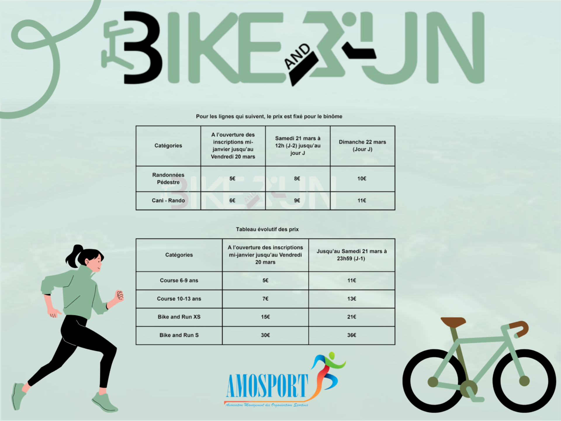 Tableau des différents tarifs :